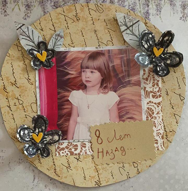 На этот раз рукодельницам предложили изготовить не только страницу альбома для фотографий, но и декоративные элементы. Цветы и листья для украшения фотоснимков нужно было сделать с нуля, то есть нарисовать эскиз, сделать из него шаблон, вырезать и нанести на цветок конкретные детали. Каждый цветочек следовало делать в определенном размере, учитывая цвет бумаги и фотографии, которую они украшают.