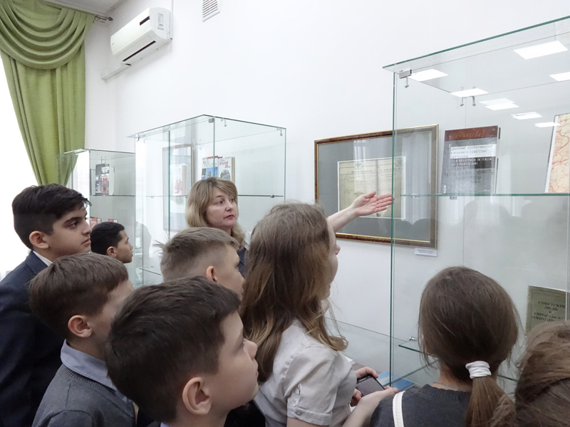 Сотрудники библиотеки провели для ребят викторину «Подвиг народа». Дети отвечали на вопросы о Великой Отечественной войне, о Ф. А. Полетаеве. Мероприятие проходило в малом конференц-зале библиотеки, где размещена выставка «Русский солдат Федор Полетаев». В завершение встречи для школьников был проведен обзор выставочного проекта.