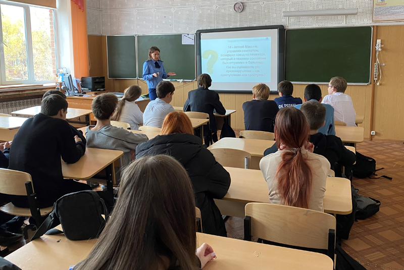 Помощник прокурора области по надзору за исполнением законов о несовершеннолетних рассказал учащимся о причинах и последствиях правонарушений. Школьники узнали об уголовной, административной, гражданско-правовой, дисциплинарной ответственностях.