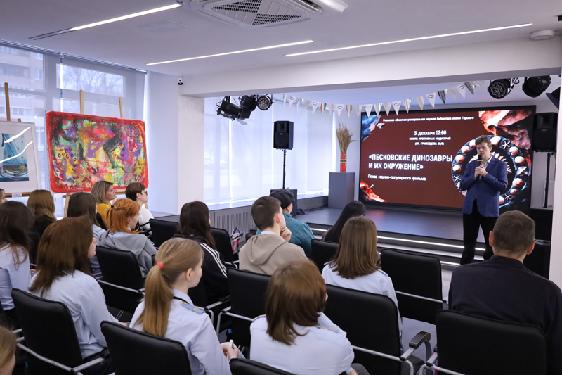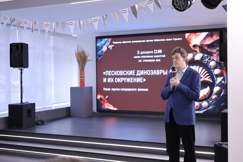 3 декабря в Рязанской областной универсальной научной библиотеке имени Горького состоялся показ научно-популярного фильма «Песковские динозавры и их окружение». Мероприятие прошло в рамках масштабного цикла «Неделя палеонтологии в “Горьковке”».