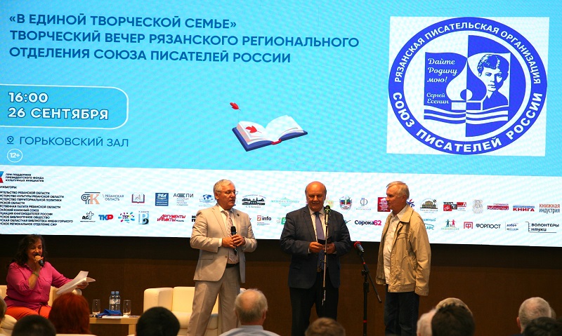 На творческой встрече чествовали рязанских писателей – юбиляров этого года. Памятного знака «За заслуги в литературе» удостоились Алексей Петрович Хлуденёв, Александр Николаевич Потапов, Татьяна Анатольевна Бочарова. Награды юбилярам вручил председатель правления Союза писателей России Николай Федорович Иванов. Директор библиотеки имени Горького, председатель Общественной палаты Рязанской области, заслуженный работник культуры РФ Наталья Николаевна Гришина поздравила рязанских поэтов и прозаиков и отметила, что встреча писателей в рамках фестиваля «Читающий мир» стала доброй традицией библиотеки.