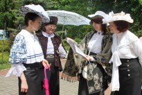 «Вуаль» познакомилась с выставкой работ лауреатов художественного фестиваля «Салют, месье Петипа!», встретила на дорожках парка самого месье Петипа, который любезно раздавал всем желающим свежий номер «Петроградской газеты»; участницы мастерской создавали атмосферу начала прошлого века, демонстрируя стилизованные наряды.
