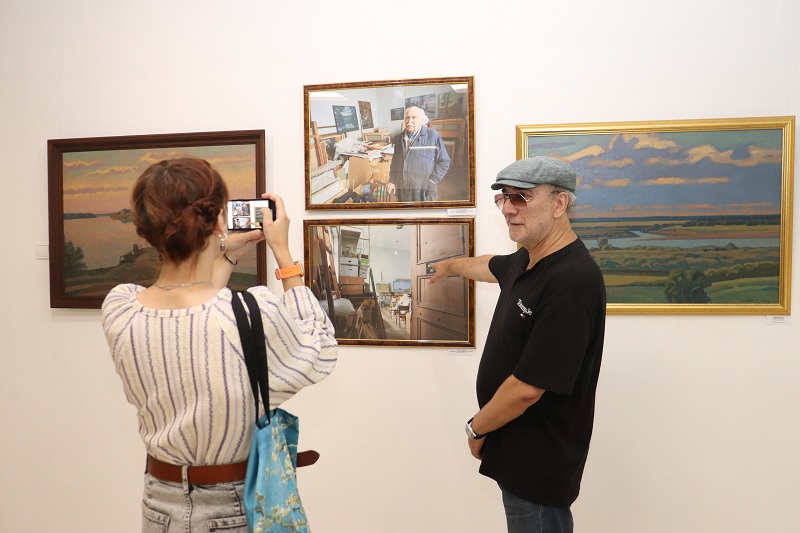 Для присутствующих была проведена экскурсия по выставке – они первыми смогли заглянуть в пространство творческой лаборатории Виктора Иванова и стать сопричастными великому таинству сотворения образа: человека, природы, мира…