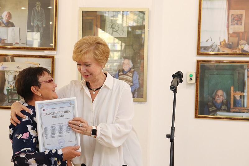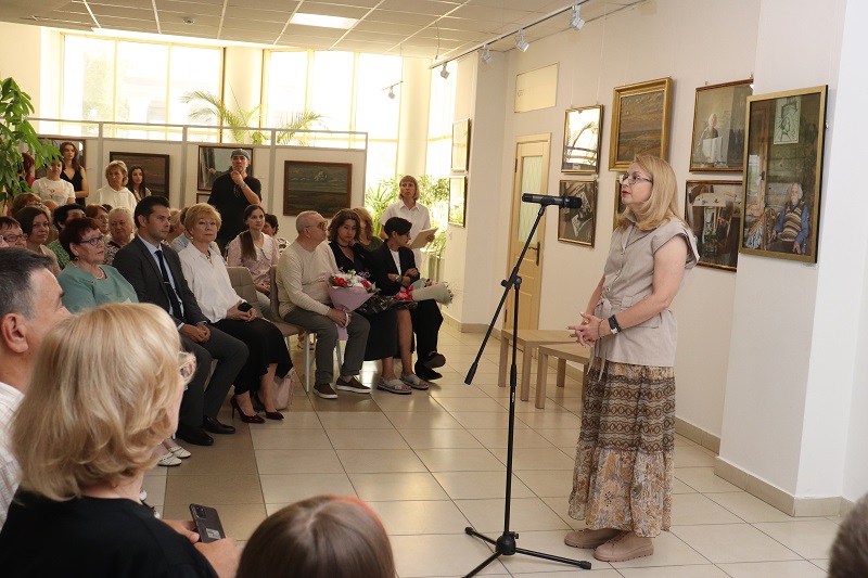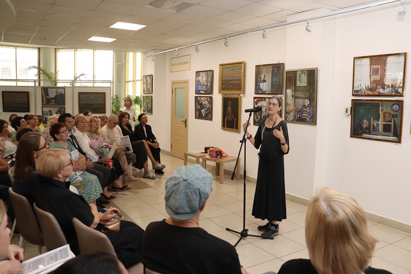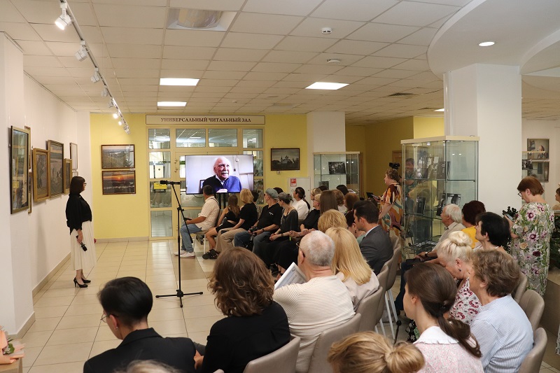Ведущая мероприятия, куратор выставки Марина Алексеевна Абрамова раскрыла секрет: идея выставки принадлежала лично директору библиотеки, заслуженному работнику культуры РФ Наталье Николаевне Гришиной, связанной узами дружбы с великим художником долгие годы.