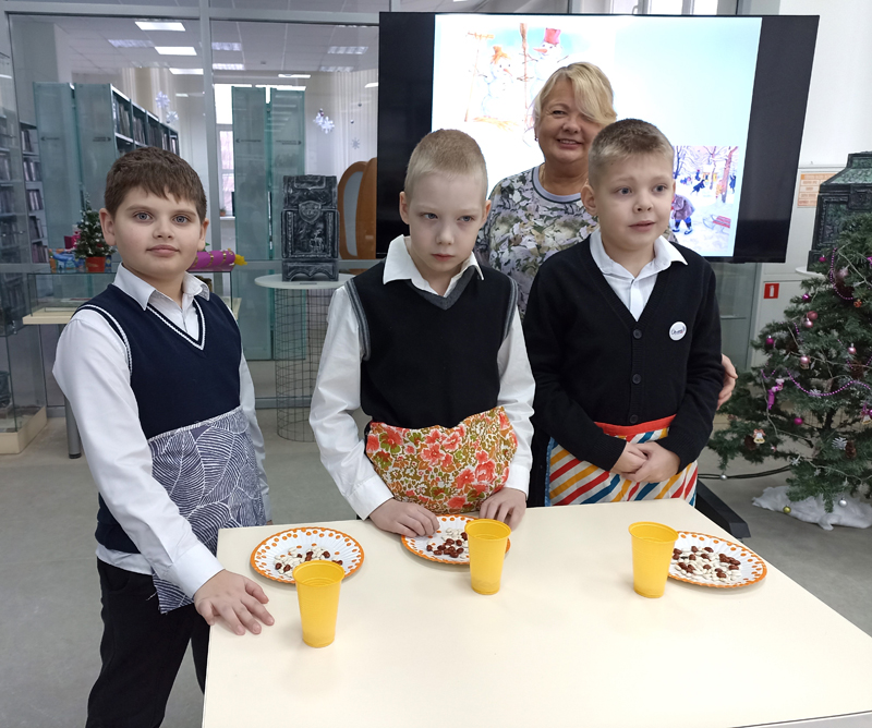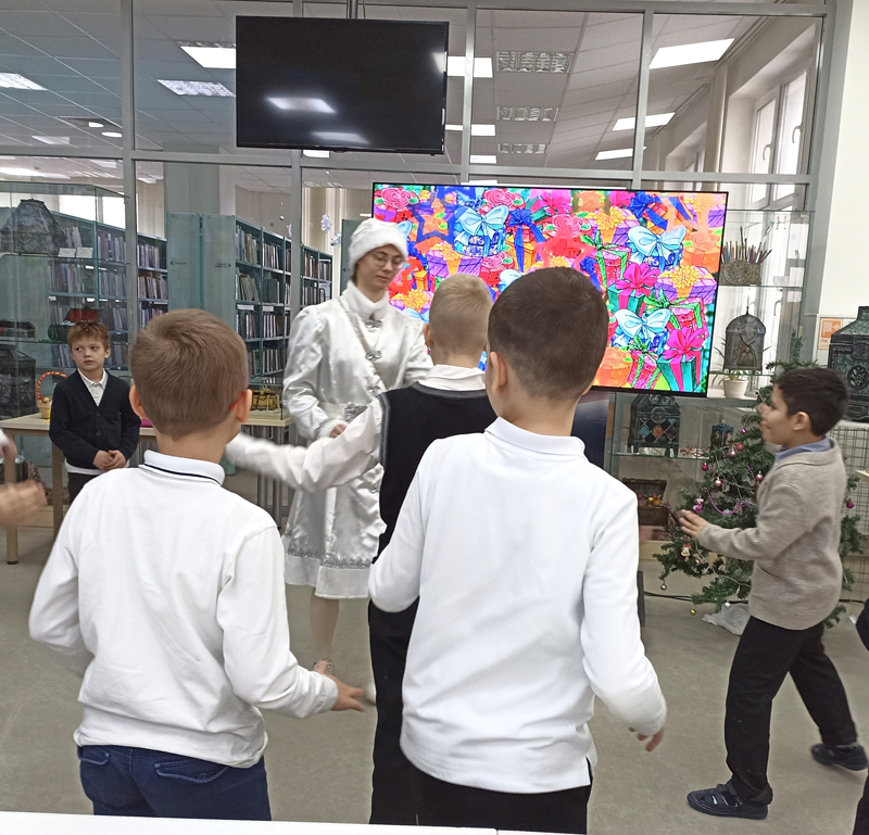 Под весёлые новогодние песенки юные читатели разгадали загадки о зиме,