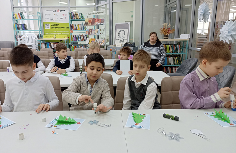 Сотрудники кафедры периодических изданий провели для учащихся школы № 10 мастер-класс по изготовлению новогодней открытки.
