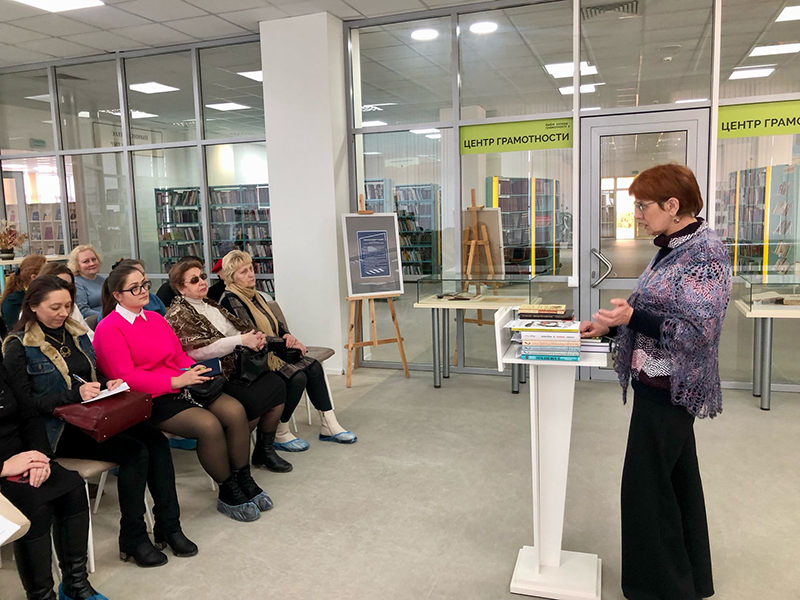На встрече речь шла о том, каким образом центр грамотности может помочь учителям и детям ближе познакомиться с русским языком, как это можно сделать в интересной и располагающей обстановке и самое главное, какие новые интересные издания библиотека готова предложить для изучения русского языка.