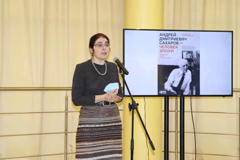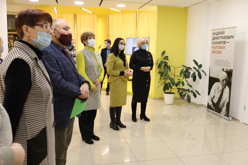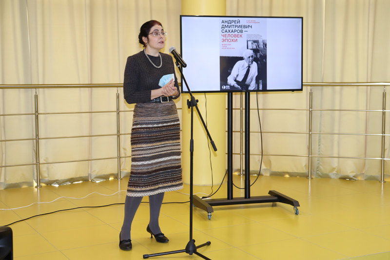 Куратор выставки от Архива и мемориальной квартиры академика А.Д. Сахарова Наталья Самовер провела экскурсию по экспозиции, сопроводив ее подробным рассказом о жизни и деятельности выдающегося гуманиста XX века.