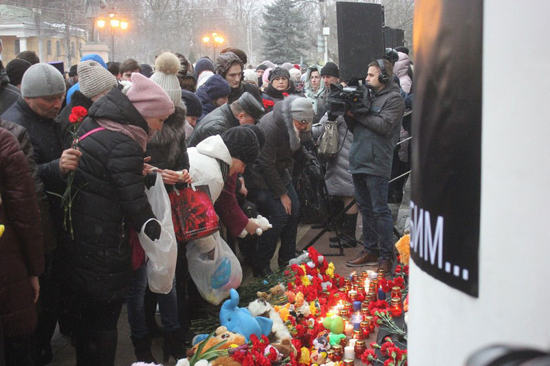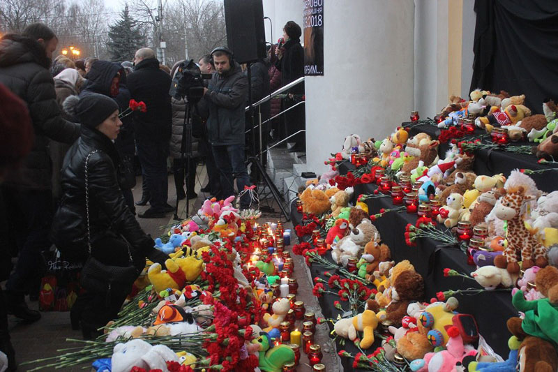 Память погибших собравшиеся почтили минутой молчания. К импровизированному мемориалу у стен филармонии были возложены цветы, игрушки, зажжены свечи, отслужена лития. Многие из пришедших не могли сдержать слёз- трагедия в Кемерове потрясла всю Россию.