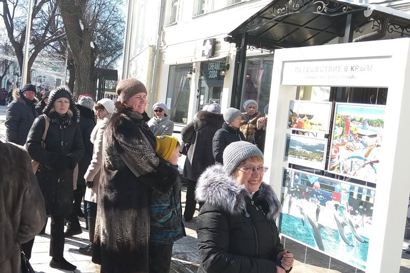 Для горожан работали интерактивные площадки, на которых можно было узнать о достопримечательностях Крыма, полюбоваться работами рязанских художников, посмотреть выступление актеров Театра кукол и отметить любимое место на карте Крыма.
