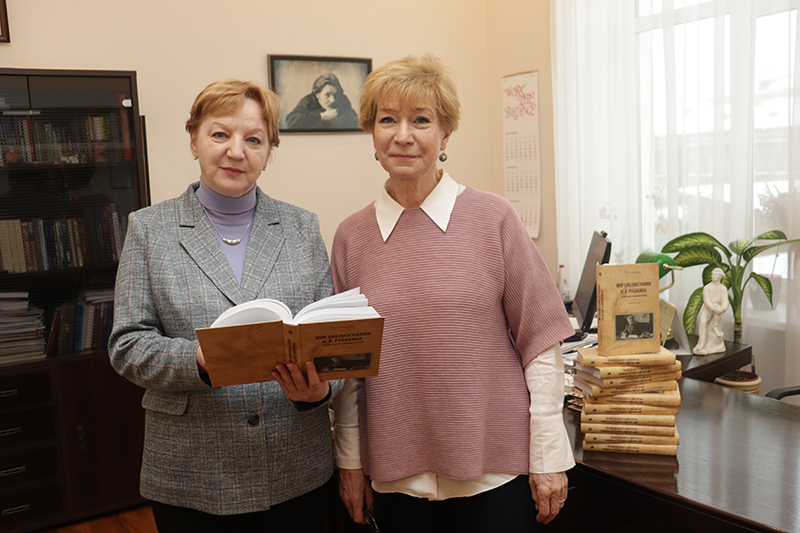 Наталья Николаевна Гришина, директор библиотеки имени Горького, председатель Общественной палаты Рязанской области, заслуженный работник культуры Российской Федерации, и редактор книги – председатель Рязанского библиотечного общества, заместитель директора по развитию РОУНБ им. Горького Светлана Алексеевна Винокурова сердечно поздравили автора книги Ирину Георгиевну Хомякову с выходом важного для библиографической науки издания.