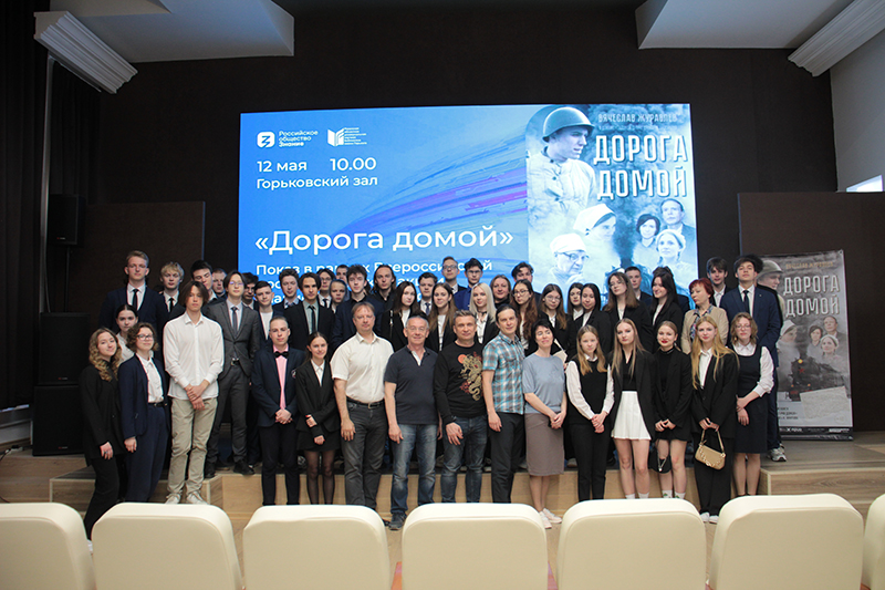 Символично, что в акции Знание.Герои Российского общества Знание приняли участие школьники гимназии № 2, потому как Арсений Благонравов в далеком 1941 году также окончил эту школу и даже успел поступить в Рязанский педагогический институт, а в сентябре был призван в ряды Рабоче-крестьянской Красной армии. После просмотра фильма ребята задали гостям множество вопросов о тонкостях съемок, бюджете картины. При этом все школьники выразили восхищение качеством и эмоциональным воздействием «Дороги домой».