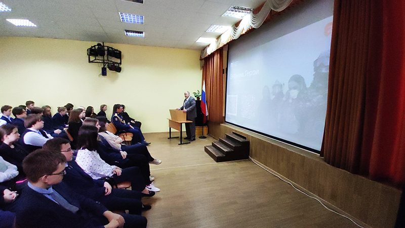 Андрей Иванович Минаев, декан исторического факультета Донецкого государственного университета, доктор исторических наук, прочитал рязанским школьникам лекцию «Роль Донбасса в истории России», начав ее минутой молчания по павшим воинам СВО.
