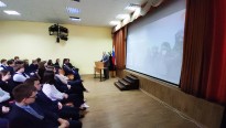 Учащиеся гимназии задавали вопросы Андрею Ивановичу об истории Донецкого государственного университета и частоте «прилетов» по городу. Сергей Владимирович Рудь уже после лекции ответил на вопросы учащихся о своем боевом опыте в Чечне.