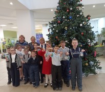 Юные читатели слушали стихи и разгадывали загадки, смотрели отрывки из мультфильмов, участвовали в предновогодних забавах и конкурсах. Для украшения елочки дети смастерили игрушку из бумаги, которая станет подарком для друзей и близких.