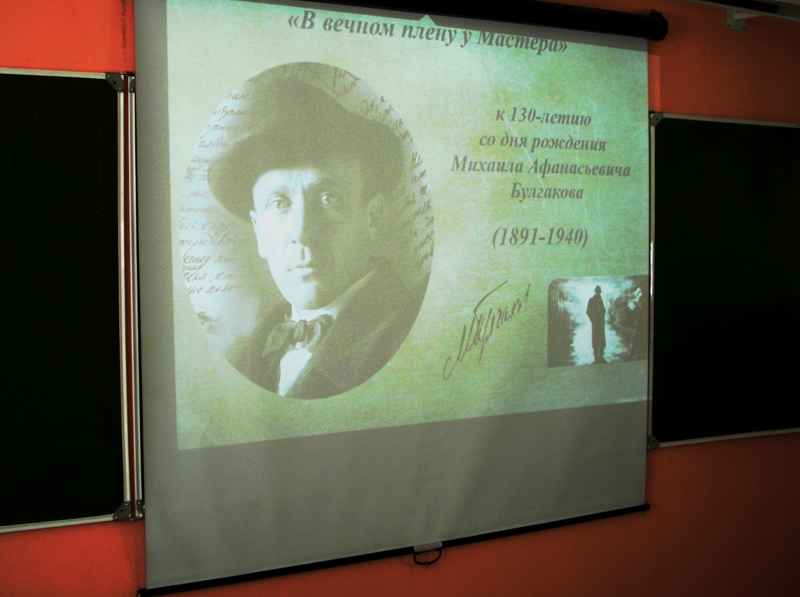 Ребята познакомились с судьбой и творчеством писателя, узнали о главных его произведениях – романах «Мастер и Маргарита» и «Белая гвардия», повести «Собачье сердце», цикле рассказов «Записки юного врача», пьесе «Иван Васильевич», послужившей основой для фильма «Иван Васильевич меняет профессию». Дополнили мероприятие чтение отрывков из произведений и воспоминаний писателя, фрагменты из документальных и художественных фильмов.