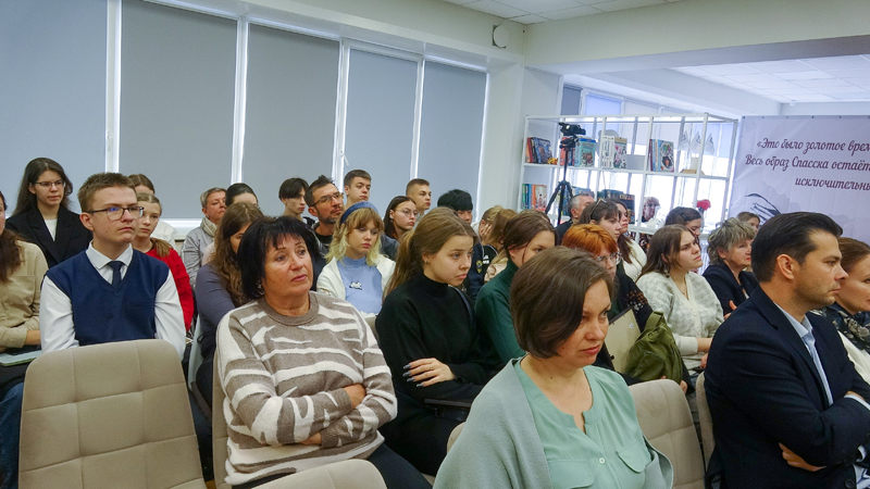 Начальник управления культуры и туризма администрации Спасского района Сергей Алексеевич Кочетков обратился к гостям с приветственным словом, а также поблагодарил студентов Рязанского художественного училища имени Г.К. Вагнера за помощь в оформлении детской комнаты Центральной библиотеки имени А.Н. Левашова Спасского муниципального района.