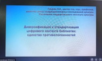 По вопросу «Цифровой контент библиотек: диверсификация или стандартизация» высказалась спикер Е.Д. Жабко, директор по информационным ресурсам Президентской библиотеки имени Б.Н. Ельцина, доктор педагогических наук. Речь шла о пополнении, использовании и хранения музейного, архивного, библиотечного цифрового контента с учетом спроса и востребованности у пользователей.