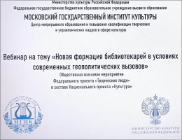 Вебинар «Новая формация библиотекарей в условиях современных геополитических вызовов»