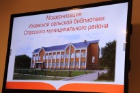 Директор Спасской центральной библиотеки Измайлова Татьяна Николаевна познакомила участников с интересными фактами из истории села Ижевское. Библиотека в селе является одной из крупнейших и старейших в Рязанской области и стала одной из первых модельных библиотек, вошедших в пилотной проект Министерства культуры РФ (2002 г.). Благодаря победе в конкурсе Ижевская сельская библиотека сможет удовлетворить растущие потребности населения.