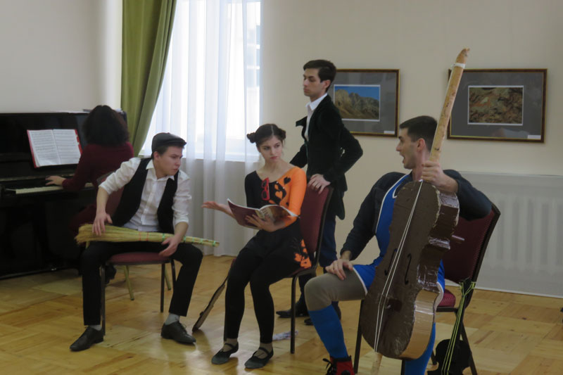 Первым номером концерта стала шуточная мини-опера отечественного композитора Р. Бойко по мотивам известной басни Крылова «Квартет». Юмористическим был и дуэт Одарки и Прокопа из оперетты «Сватанье на Гончаровке» в исполнении студентов Олега Воронина и Вероники Гамарко.