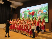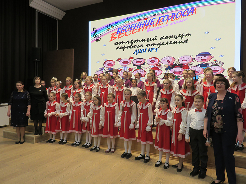 Концерт открыло выступление хора первого класса, исполнившего песни С. Долгушина «Что такое музыка», И. Фроловой «Самая любимая», Я. Дубравина «Задорные чижи» и «Пойте вместе с нами», А. Ростовской «У кота» (из цикла «Три хора на народные песни») и другие. В исполнении хора «Капель» прозвучали песни Р. Глиэра «Сияет солнце…», Я. Дубравина «Всюду музыка живет», хор В. Моцарта «Откуда приятный и нежный тот звон» из оперы «Волшебная флейта». Ансамбль младших классов исполнил русскую народную песню «На горе-то калина». Хор «Элегия» исполнил песни С. Халаимова «Разноцветный мир детства», А. Аренского «Тихо все средь чарующей ночи», Я. Дубравина «Вальс» и «Нам нравятся каникулы», русскую народную песню «Пойду ль я, выйду ль я». И, конечно, программу украсили замечательные сольные номера учащихся школы, подаривших публике частичку своей светлой души. Это Настя Шатохина, Кира Бучнева, Вика Паршина, Екатерина Пименова, Анастасия Зорина, Савва Сальников, София Бирюкова, Карина Айрапетян.