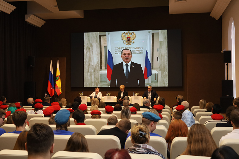 С видеоприветствием к собравшимся обратился член Совета Федерации Федерального собрания Российской Федерации, член Академии военных наук, доктор технических наук, профессор Игорь Александрович Мурог.