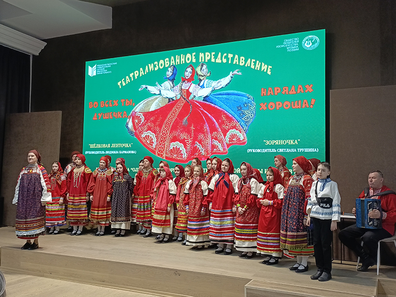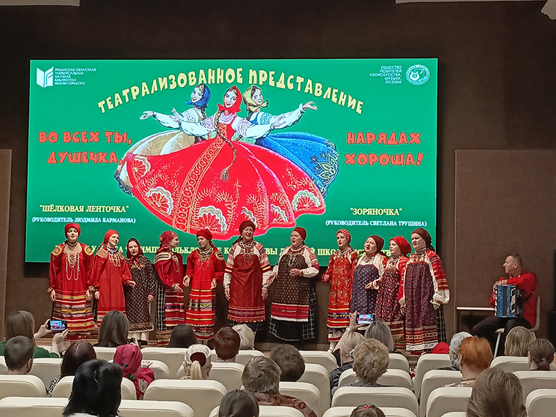 Сегодня в клубе «ОЛИМП» состоялось театрализованное представление «Во всех ты, душечка, нарядах хороша», которое показали фольклорные коллективы Детской школы искусств № 1 г. Рязани «Зоряночка» (руководитель Светлана Трушина) и «Шелковая ленточка» (руководитель Людмила Карманова).