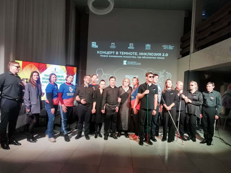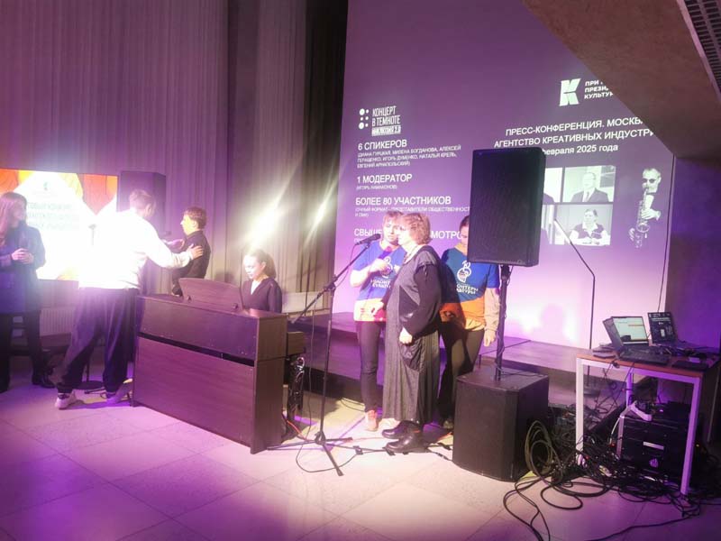 В рамках проекта «Концерт в темноте. Инклюзия 2.0» волонтеры оказывали помощь в ориентации в затемненном пространстве, обеспечивая комфортное и безопасное пребывание зрителей.