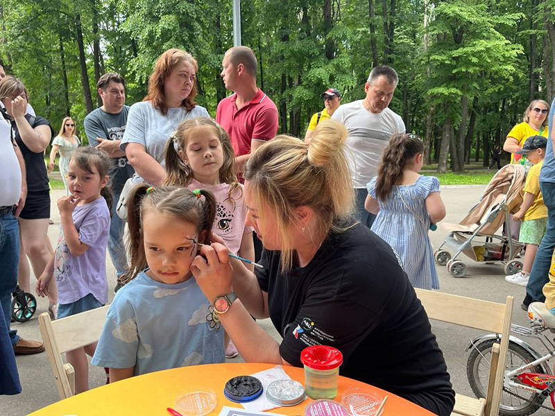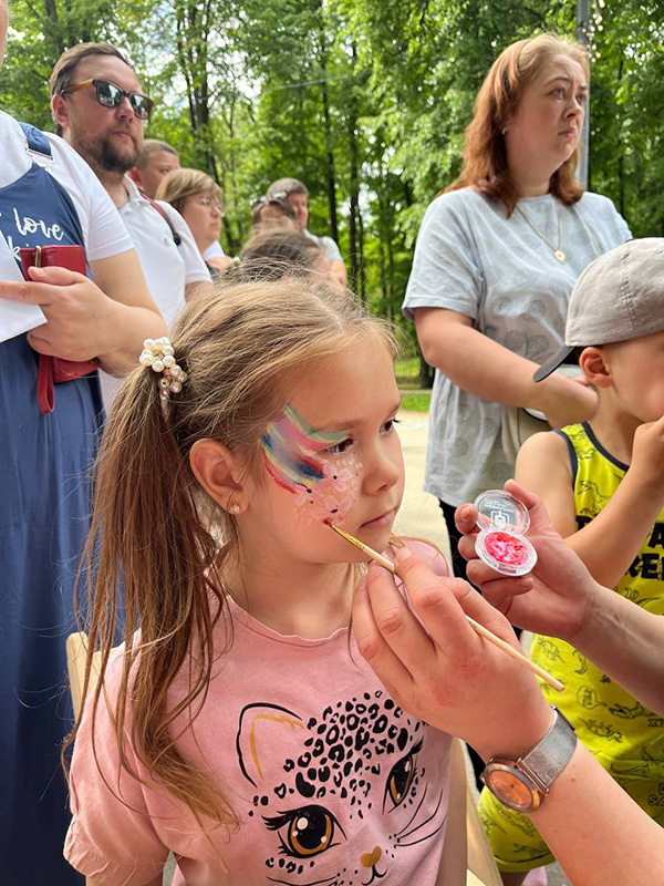 А самых маленьких участников разрисовывали аквагримом. Дети с восторгом смотрели на себя в зеркалах, не узнавая свои лица в веселых образах. Аквагрим стал неотъемлемой частью праздника, приносящей радость и создающей неповторимую атмосферу веселья и волшебства.