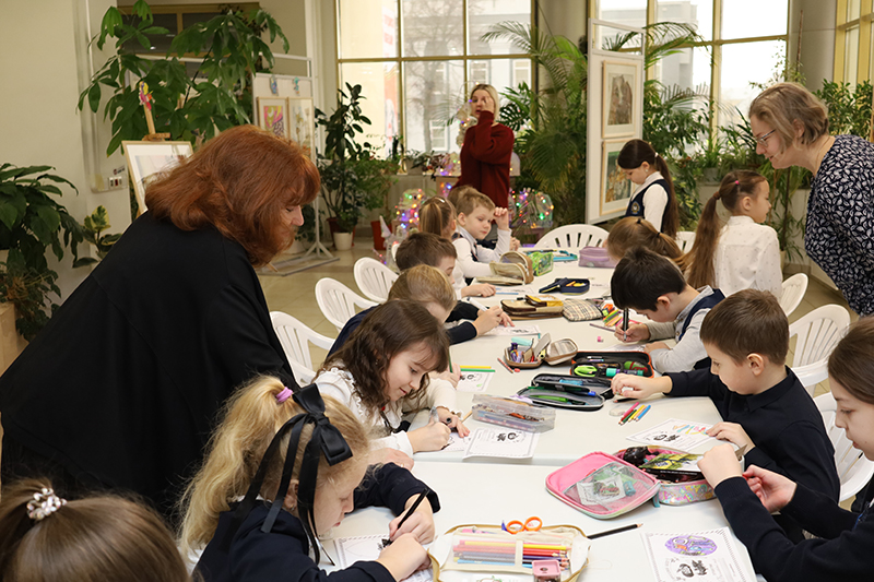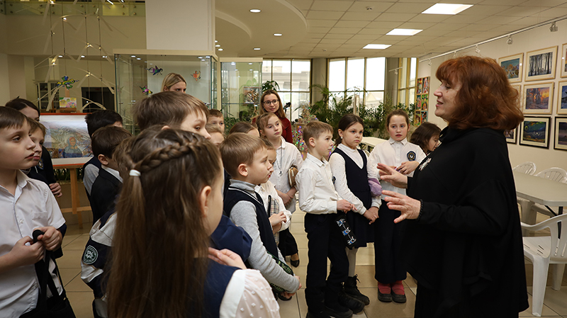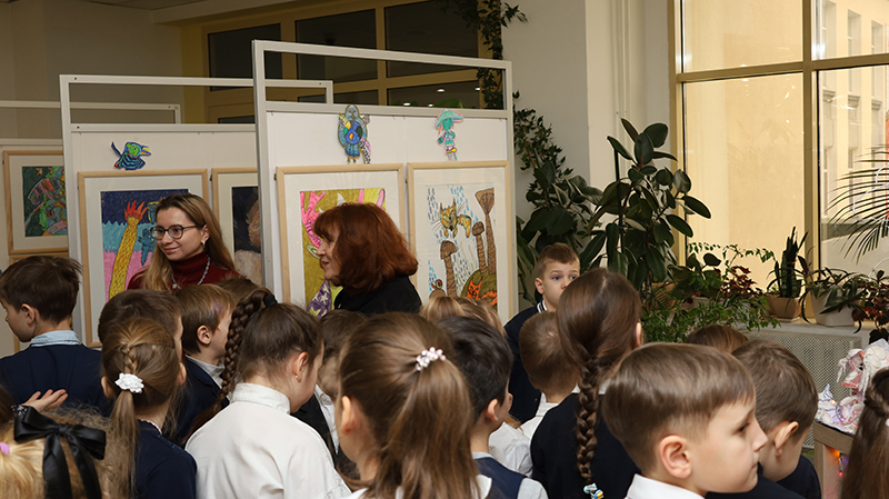 Людмила Львовна Пронкина провела для ребят экскурсию по выставке, в ходе которой дети погрузились в волшебные миры творческих академий. Юные художники побывали в академии смелости и экстрима «Подводопогружение», академии смелого туриста «Космоград», академии натуралиста «Мушкабланка», академии красоты и невиданных чувств – городе художников «Ухтынск», академии игры «Кукляндия», академии любопытных «Тудасюдачинск» и академии радости «Клоундон». «Читайте, мечтайте, путешествуйте, мастерите и будьте счастливы. И обязательно дарите свое счастье всему миру», – пожелала ребятам Людмила Львовна.