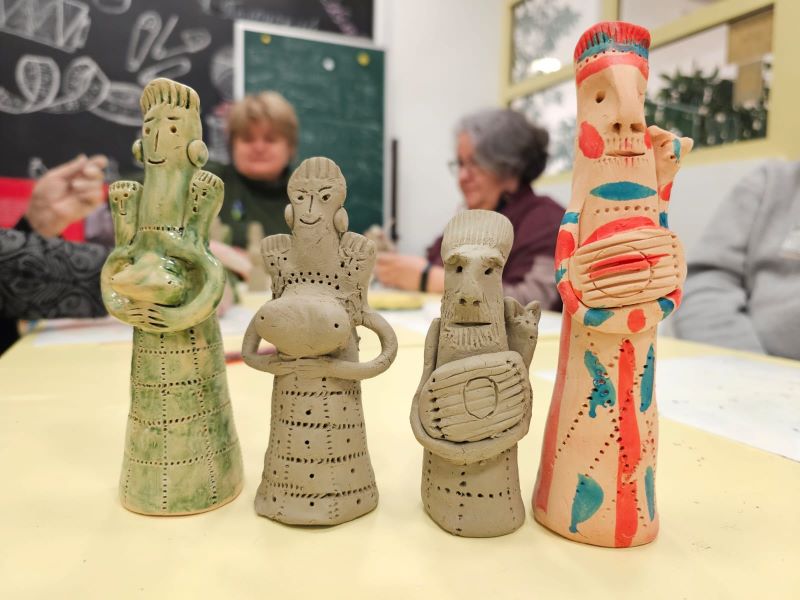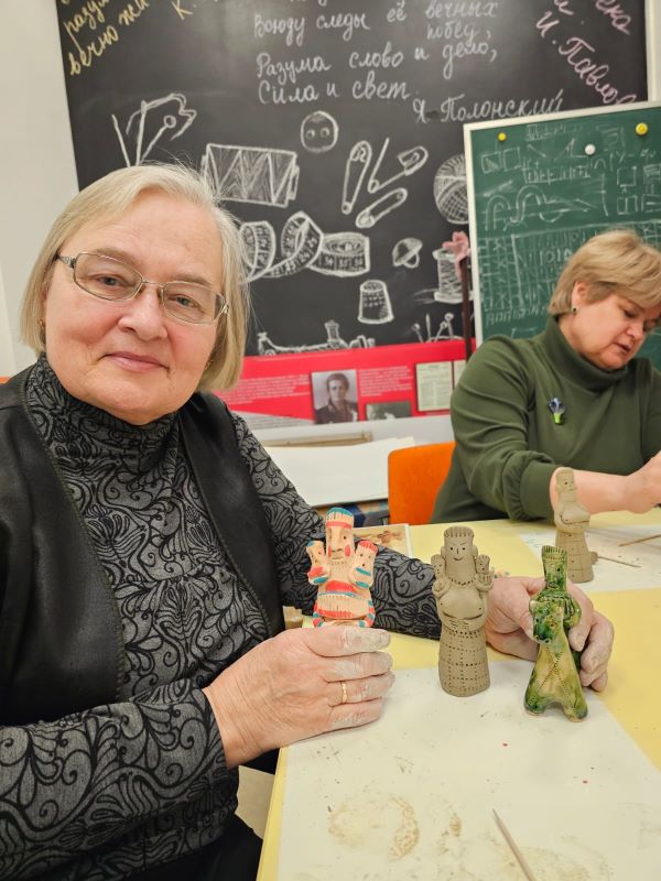 На мастер-классе в нашей библиотеке Марина Васильевна рассказала историю появления и бытования Александро-Прасковьинской глиняной игрушки, поделилась некоторыми секретами ее изготовления на примере образцов, созданных мастером и ее учениками.