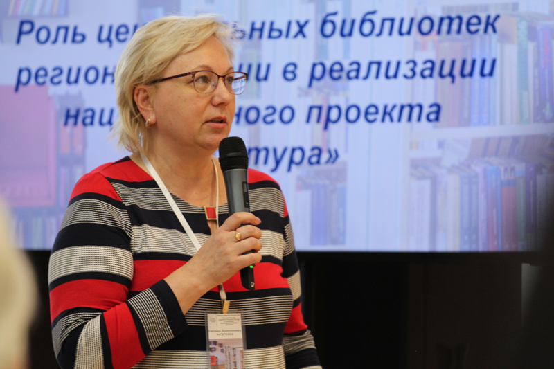 Людмила Алексеевна Пронина, директор Тамбовской областной универсальной научной библиотеки имени С. А. Пушкина, представила опыт работы региональной библиотеки в цифровой среде. Оцифровка фондов является стратегическим вариантом сохранения культурного наследия. Базовыми направлениями работы региональной библиотеки в рамках федерального проекта «Цифровая культура» являются оцифровка документов и создание новых ресурсов в различных форматах, включая виртуальные экспозиции. Электронная библиотека дает нам шанс выполнить показатели увеличения посещений в 5 раз. Цифровые документы являются материализацией памяти, поэтому библиотеки могут стать центрами локальной истории.