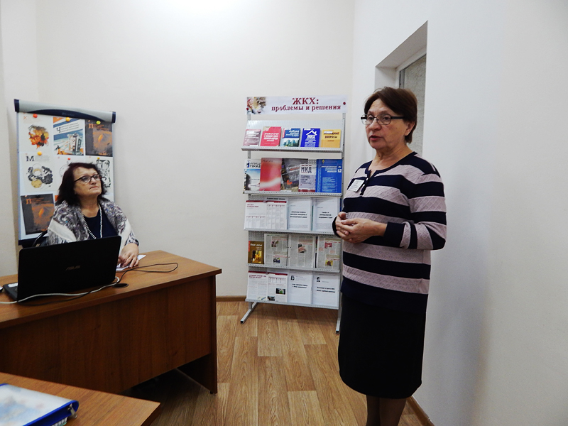 Библиотека, будучи крупной, заметной общественной площадкой региона, является одновременно и консультационным центром, и держателем фондов, в том числе правовой тематики. Краткий обзор выставки из фондов зала периодических изданий «ЖКХ: проблемы и решения» представила Вера Анатольевна Буковская. Журналы, представленные на выставке, по окончании встречи были с интересом изучены.