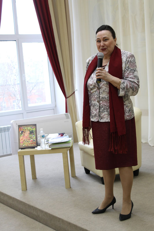 Любовь Владимировна Рыжкова-Гришина – поэт, прозаик, филолог, член Союза писателей России, кандидат педагогических наук, автор 500 публикаций. Она рассказала о своем творчестве, о том, как создавалось «Веселое лукошко», читала стихи из разных книг. Живой диалог автора с читателями придал мероприятию особый смысл.