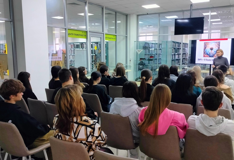Сегодня в библиотеке состоялась встреча студентов Рязанского филиала Московского университета имени С.Ю. Витте с медицинским работником Рязанского центра профилактики и борьбы со СПИДом и инфекционными заболеваниями Надеждой Викторовной Литвинчук.