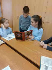 В последнее время появилось множество инициатив, направленных на популяризацию и возвращение чтения вслух. Вот и участники клуба «Буквоежка» попробовали себя в роли чтецов. Для громкого чтения они выбрали книги про богатырей и витязей земли русской, среди которых «Русь богатырская» Василия Старостина, сборник «Богатыри и витязи Русской земли» и «Былины: Книга для внеклассного чтения» Юрия Круглова.