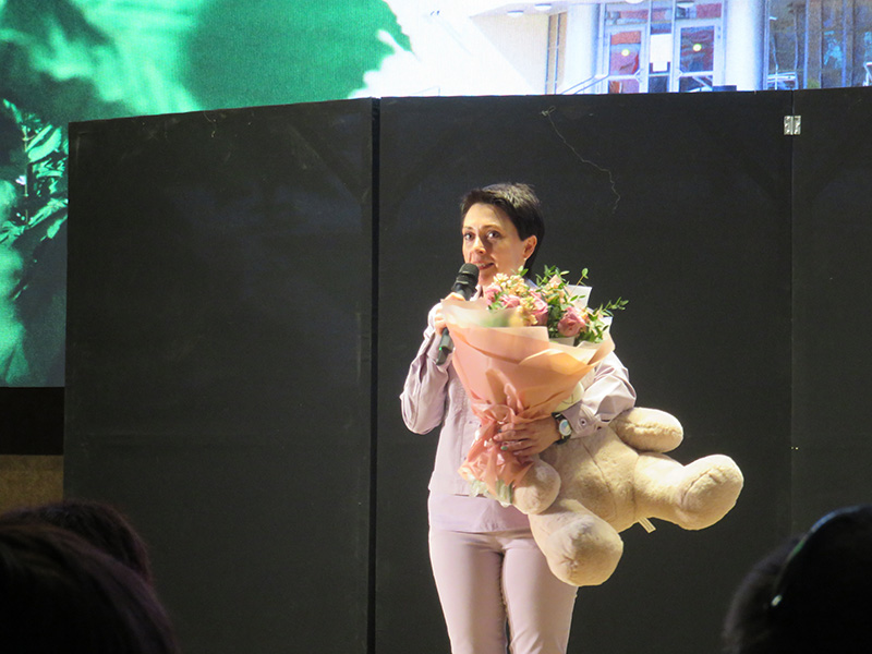 К теплым пожеланиям присоединилась поэт и писатель, руководитель «Центра творческого развития и психофизиологической коррекции человека» Елена Александровна Корнеева, которая поздравила воспитанников студии и их руководителя, Ирину Козлову, с красивой юбилейной датой и пожелала студии дальнейшего развития и процветания.