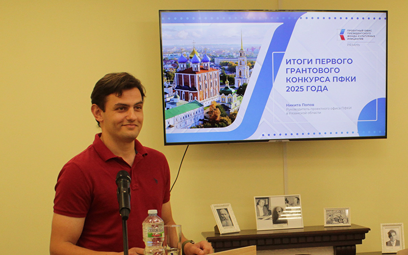 Никита Николаевич Попов, руководитель проектного офиса Президентского фонда культурных инициатив в Рязанской области, познакомил участников совещания с итогами заявочной кампании Президентского фонда культурных инициатив и рассказал о проблемах при взаимодействии с проектным офисом и дальнейшей работе над проектами.