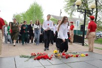 В память о героях, погибших за родную землю, была объявлена минута молчания. После участники митинга возложили к памятнику цветы.