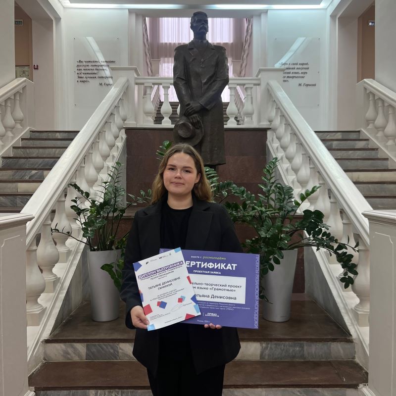 Татьяна Ганина, библиотекарь I категории центра креативных индустрий, представила на конкурсе образовательно-творческий проект о русском языке «Грамотные». Это обширная культурная программа мероприятий, направленных на создание и распространение лучших практик популяризации русского языка и чтения среди молодежи.