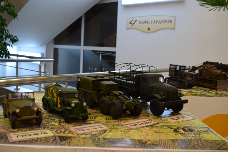В холле библиотеки работает выставка стендового моделизма, на которой представлены модели военных автомобилей ХХ века, выполненные из бумаги. Автор коллекции – моделист-любитель Алексей Юрьевич Гренадёров.