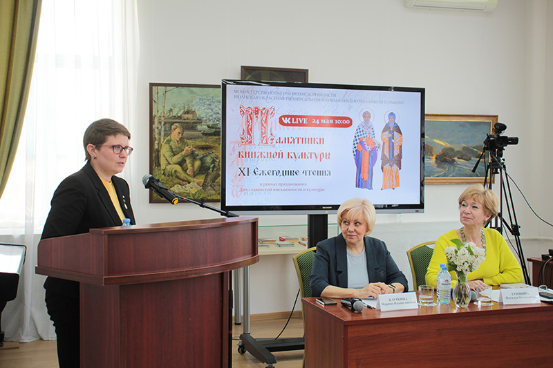 24 мая 2023 года в Малом конференц-зале Рязанской областной универсальной научной библиотеки имени Горького состоялись XI Ежегодные чтения «Памятники книжной культуры». Они приурочены к празднованию Дня славянской письменности и культуры, дню памяти святых Кирилла и Мефодия и посвящены знаменательным датам в истории книгопечатания. Их цель – привлечь внимания к вопросам сохранения и изучения мирового культурного наследия и национальных ценностей, обсудить результаты научно-исследовательской работы, обменяться опытом и расширить сотрудничества между учреждениями культуры, образования и науки.