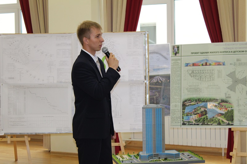 На защите были представлены следующие работы: постройка центра научно-художественного и изобразительного творчества, здания жилого корпуса в детском оздоровительном лагере в поселке Передельцы Рязанской области, гостиничного комплекса с многоуровневой подземной парковкой и т.д. Все представленные работы были высоко оценены членами государственной экзаменационной комиссии.