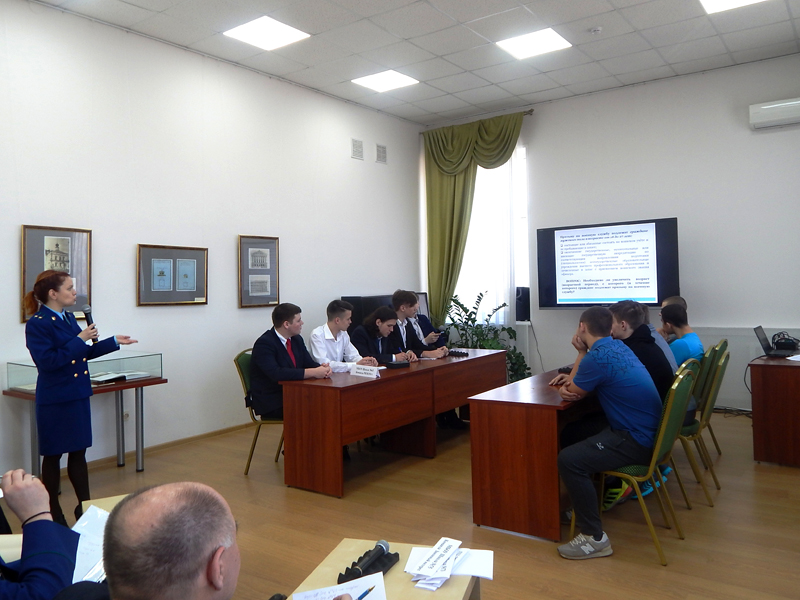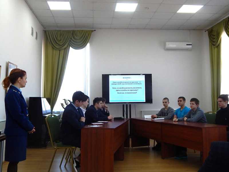 Проводила командную игру старший помощник прокурора области по правовому обеспечению Мария Сергеевна Нетыкс. Соревнование проходило в формате дебатов поочередно между двумя командами. Ребята обосновывали свою позицию по разным вопросам: необходимо ли увеличить призывной возраст, правомерно ли предоставление отсрочки от призыва гражданину, являющемуся доктором или кандидатом наук, есть ли необходимость введения дополнительных отсрочек от призыва на военную службу.