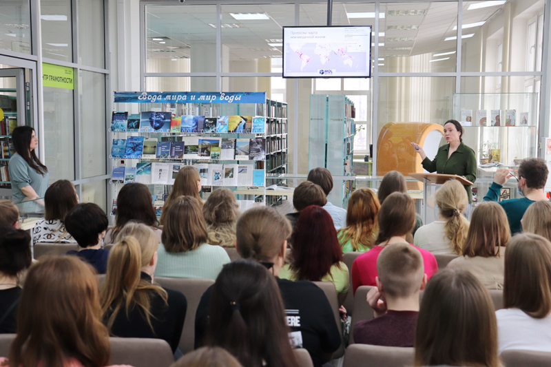 Существенным дополнением к докладам стали видеоматериалы, презентации и выставка «Вода мира и мир воды», обзор которой провела Ирина Ларионова, главный библиотекарь кафедры производственной литературы.