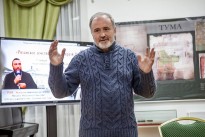 Во второй части заседания клуба иерей Михаил Митрохин рассказал об истории Тумского Троицкого храма и тумчанах, участвовавших в строительстве, украшении и сохранении храма, его священнослужителях. Троицкий храм в Туме – единственный в Рязанской области храм, где установлен иконостас из белого мрамора, изготовленный, предположительно, на харьковской фабрике итальянца Фердинанда Соммавилла. Храм расписан художниками школы Виктора Михайловича Васнецова в русском стиле в начале ХХ века. Ранее мастера расписывали Владимирский собор в Киеве.