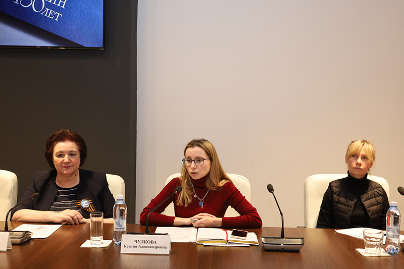 Следующим докладом стало выступление заместителя директора по социокультурной деятельности и связям с общественностью Рязанской областной универсальной научной библиотеки имени Горького Чулковой Ксении Александровны. Она рассказала о мероприятиях, посвященных празднованию 130-летия Сергея Александровича Есенина и сообщила о насыщенной культурной программе, куда войдут научные проекты и конференции, выставки и творческие встречи. Также на площадке библиотеки и внутри креативных пространств нашего города пройдут литературные и поэтические акции. Традиционный праздник, посвященный Есенину, состоится с 3 по 5 октября и в Рязани, и в Константиново, он будет сопровождаться участием Сергея Безрукова и других видных деятелей культуры. Отдельно Ксения Александровна рассказала о плане издательской деятельности библиотеки, который включает печать методического пособия «Нравственно-философские основы творчества Есенина. Книга для учителя», подготовленного Ольгой Ефимовной Вороновой, а также печать набора открыток «Рязанская Есениниана в экслибрисе».