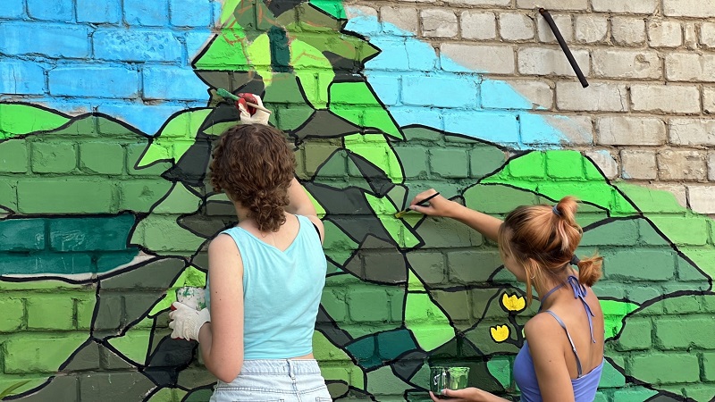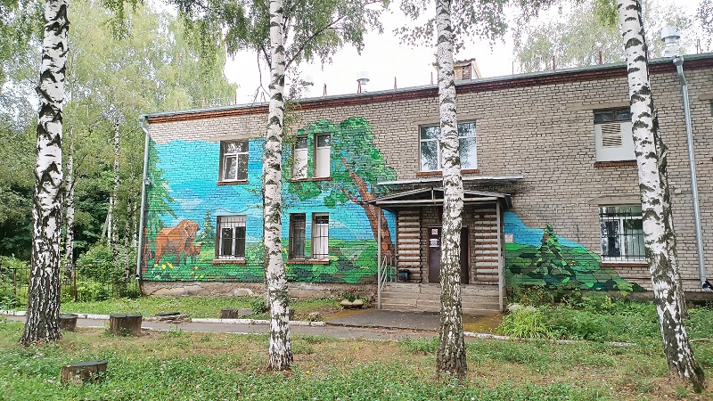 Сотрудники библиотеки совместно с волонтерами трудились несколько недель: решали организационные вопросы, проводили мастер-класс по рисованию для детей, арт-субботник и, конечно же, создавали сам мурал. Итогом нашей работы стал масштабный арт-объект, который получился ярким и красочным. Граффити изображает краснокнижных зубров в их естественной среде обитания. Мы уверены, что маленьким посетителям диспансера будет интересно посмотреть на великолепных животных, обитающих в нашем регионе. И надеемся, что благодаря нашей работе их впечатления от посещения лечебного заведения будут окрашены в радостные и веселые краски.