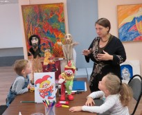 Ребятишки познакомились с профессиональным художником-постановщиком кукольного театра Ириной Сельмен, ее декорационной композицией «Петрушечный театр» и удивительными куклами из авторской коллекции. Петрушки Ирины Сельмен – необычные персонажи. Это чудаки, которые, по мнению автора, по-своему украшают мир. Они созданы из текстиля, пластика, глины, но внутри каждого, без сомнения, душа. Все желающие смогли сделать яркие фото на память с понравившейся куклой.